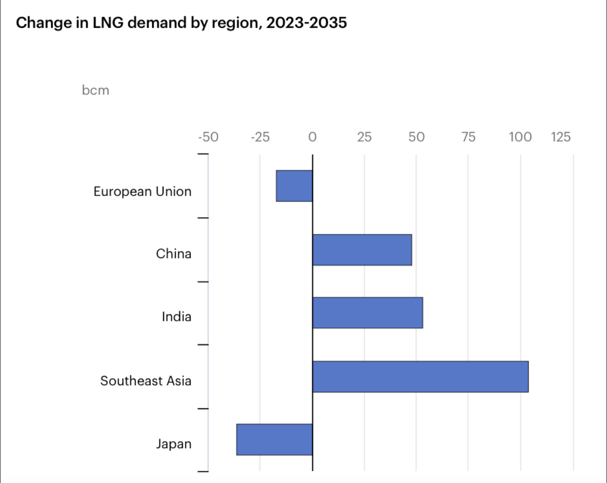 Per dare un’idea della sempre maggiore importanza che questo combustibile ha nei mercati energetici, le prime stime indicano che il gas naturale ha soddisfatto circa il 40% dell’aumento della domanda globale di energia nel 2024, una quota maggiore rispetto a qualsiasi altro combustibile. Questa crescita relativamente forte è dovuta principalmente alla regione Asia-Pacifico, che rappresenta quasi il 45% della domanda incrementale di gas nel 2024. Sono i mercati asiatici in crescita che, secondo le stime AIE, traineranno un ulteriore aumento della domanda di gas nel 2025.