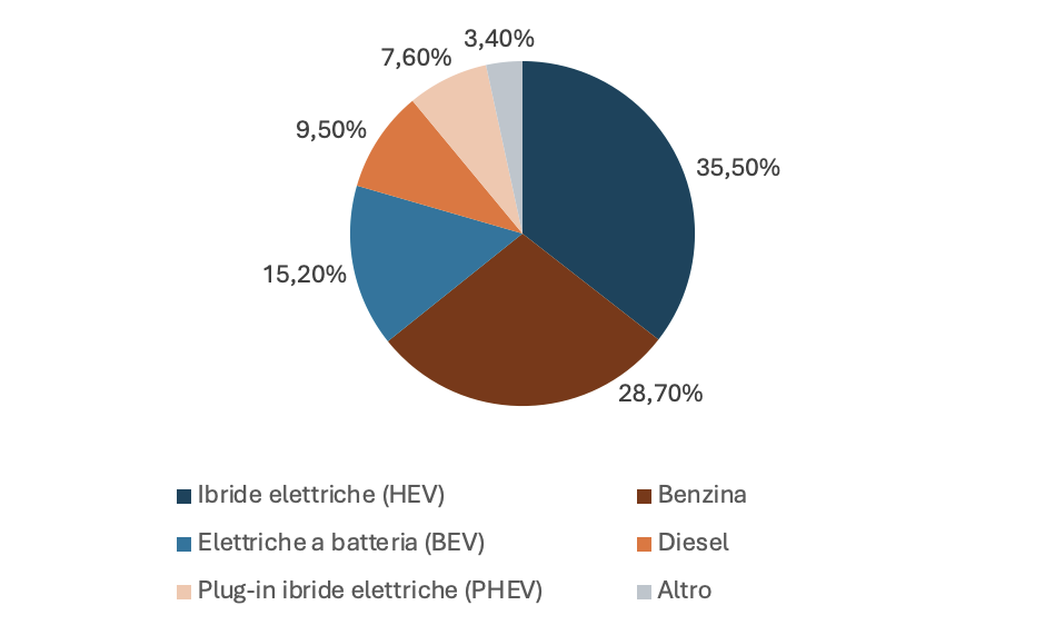 Figura 3: Immatricolazioni di auto nuove nell’UE per fonte di alimentazione (gennaio-marzo 2025)
