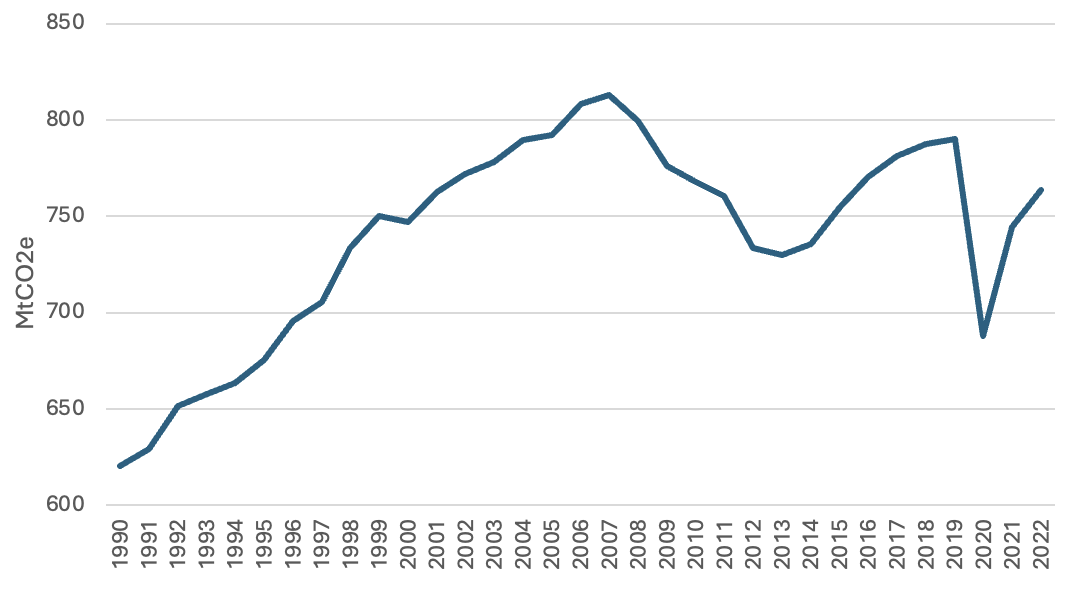 L’industria automobilistica ha un’importanza cardinale per l’economia europea, contribuendo per il 7% al PIL dell’UE e fornendo occupazione in tutte le fasi della filiera a circa 13 milioni di cittadini. D’altro canto, però, il settore dei trasporti è responsabile di circa un quarto delle emissioni totali di gas serra in Europa (Figura 1), e il trasporto stradale contribuisce al 71% di questa quota, con emissioni storicamente elevate (Figura 2).