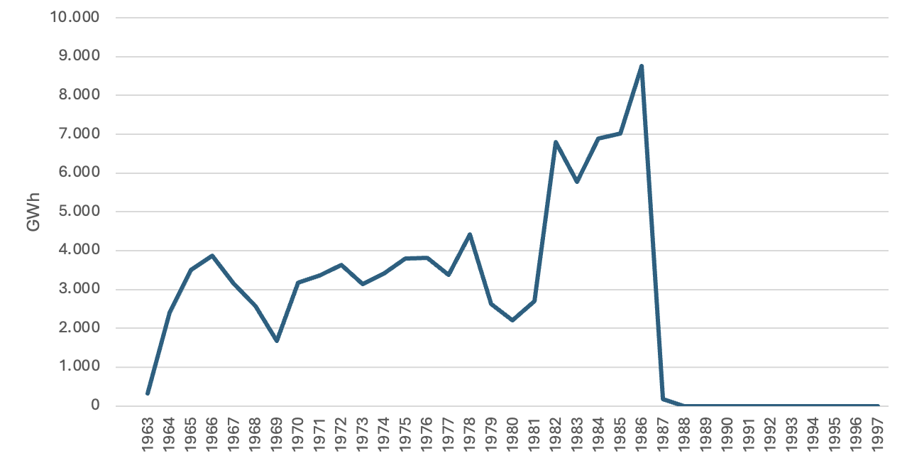 Figura 2: Produzione lorda elettronucleare in Italia a partire dal 1963