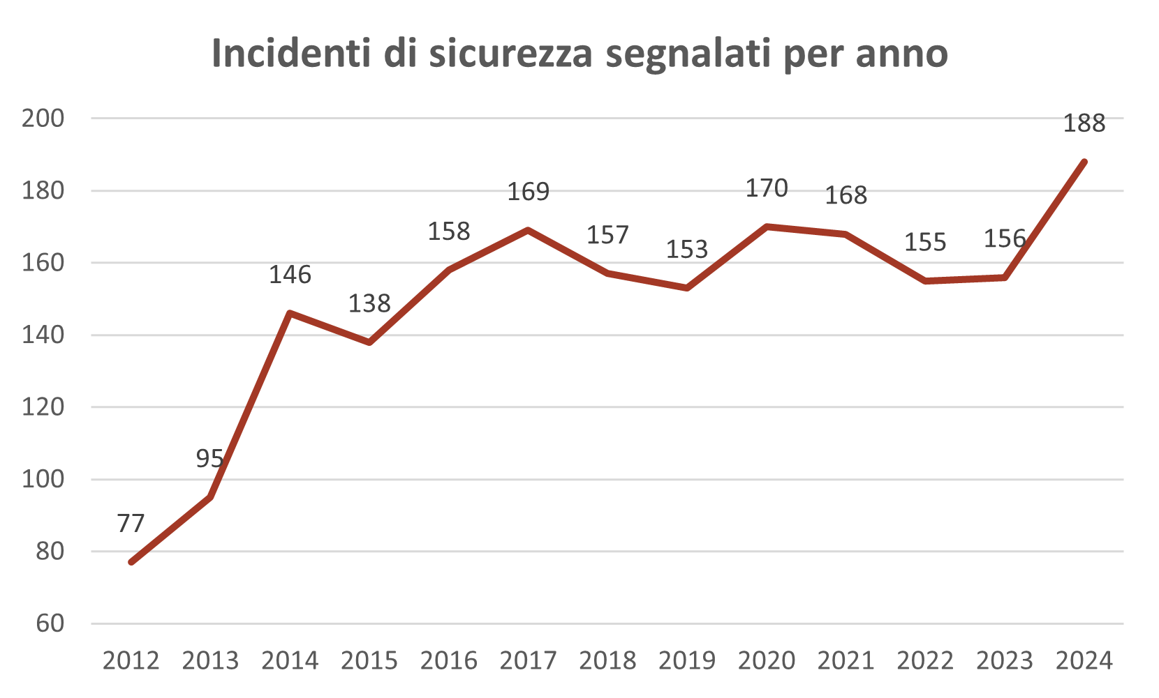 Ebbene, l’ultima edizione pubblicata nel mese di luglio (Telecom Security Incidents 2024) prende come riferimento il 2024, anno in cui gli incidenti di sicurezza significativi si sono attestati su numeri leggermente più alti (188) rispetto al recente passato (156 nel 2023 e 155 nel 2022).