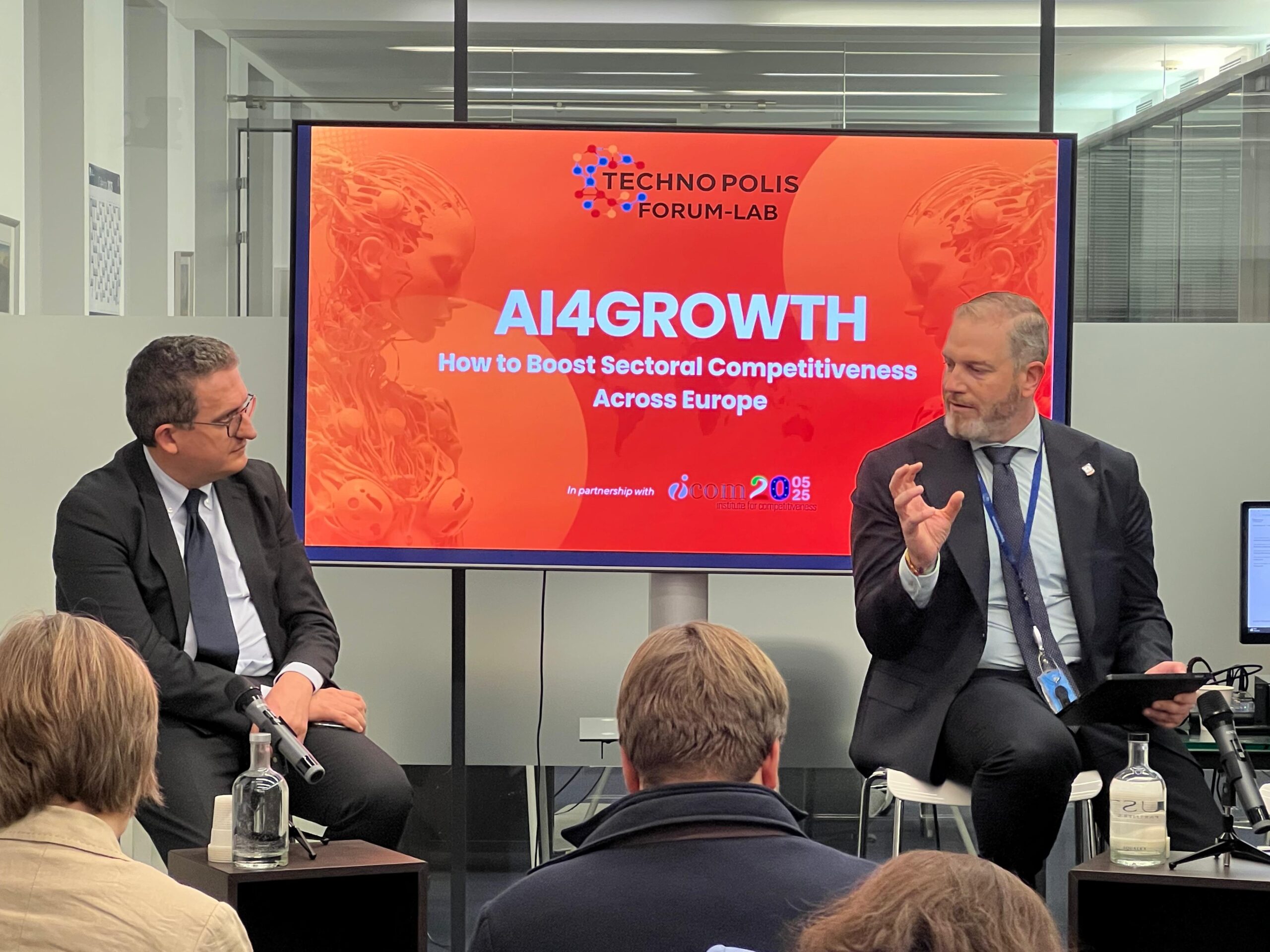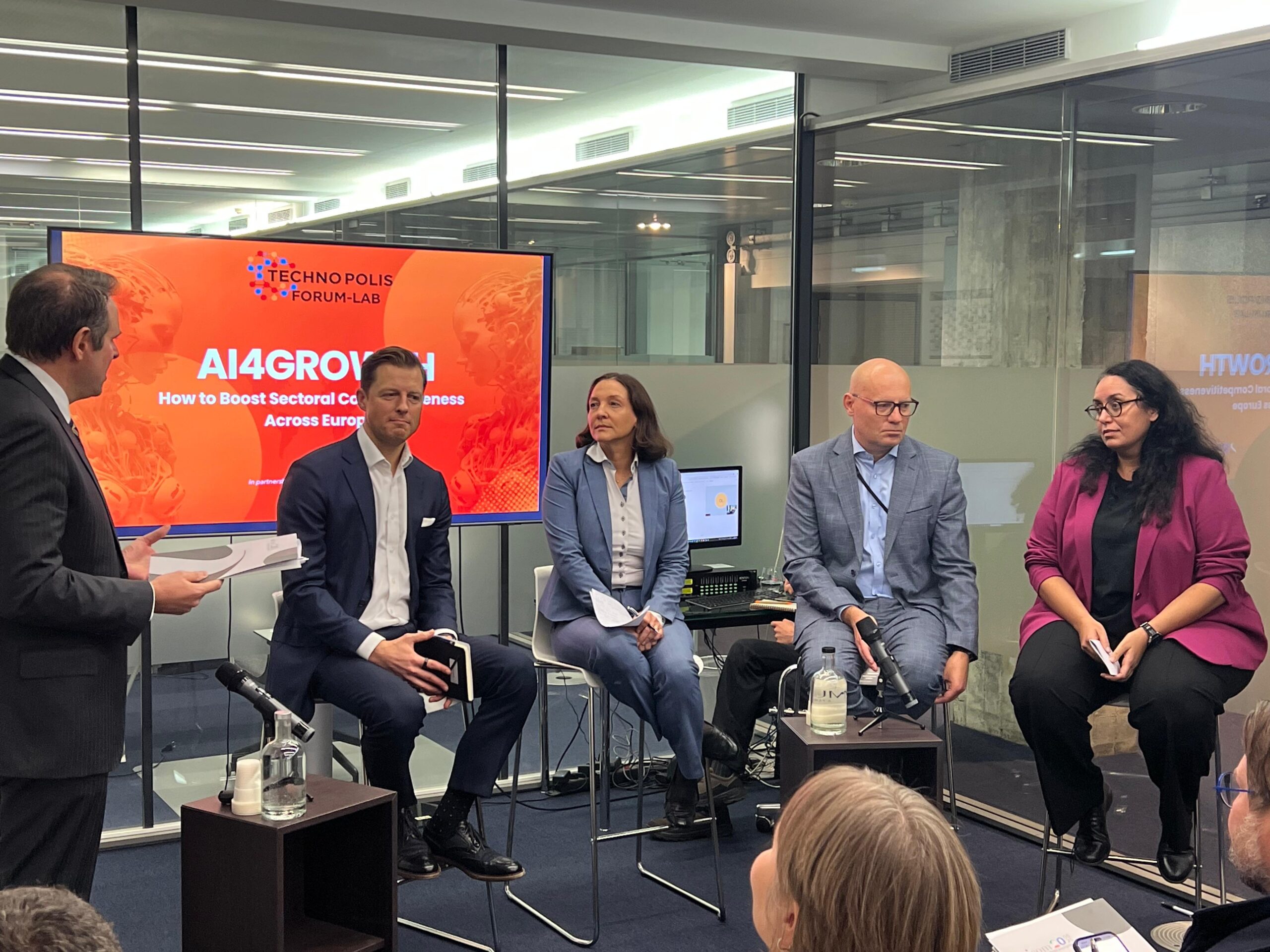 Yesterday, I-Com Brussels hosted the Techno Polis Forum-Lab’s launch event: “AI4GROWTH – How to Boost Sectoral Competitiveness across Europe”.